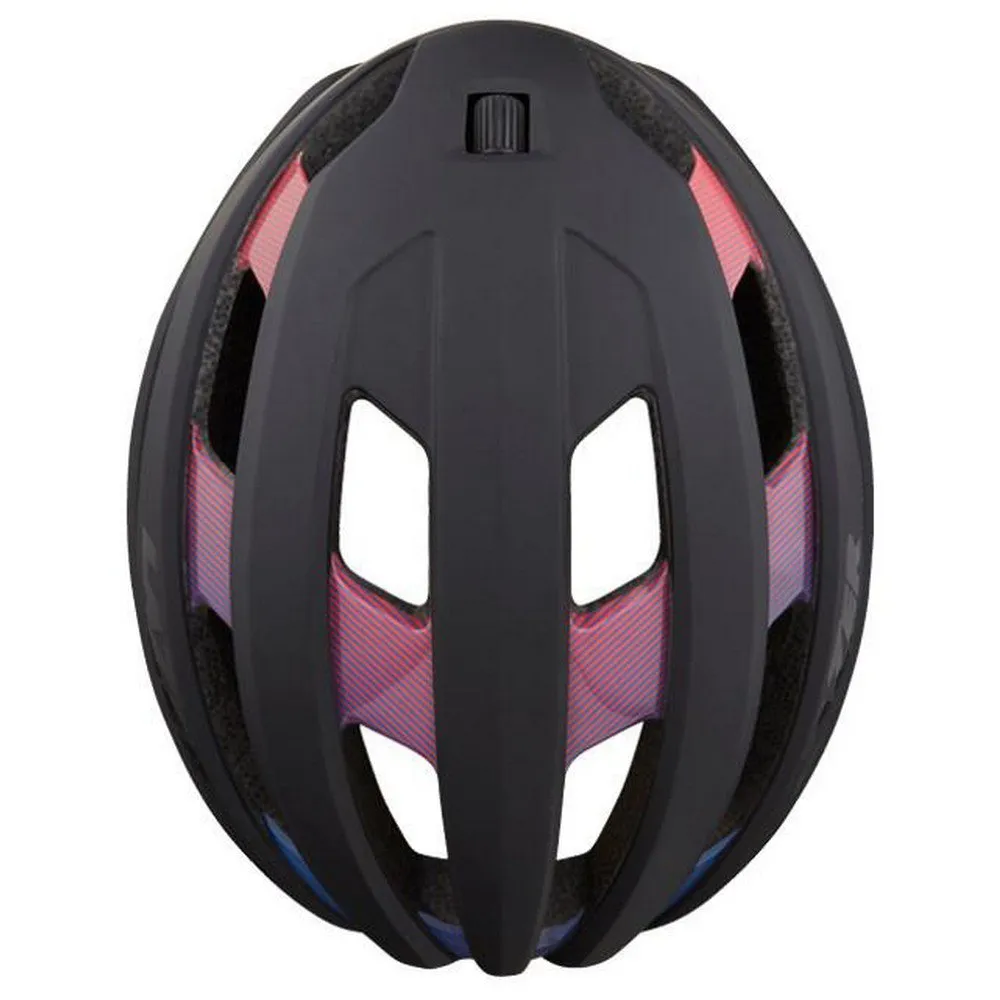 La cesta ajustable para la cabeza permite que la sección trasera del sistema de retención se ajuste hacia arriba o hacia abajo, cambiando el tamaño vertical del casco en función de las preferencias del ciclista hacia la comodidad.